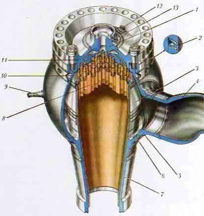 стенки камеры) закреплены в огневом днище и среднем днище так, чтобы между собой соседствовали форсунки из различных групп