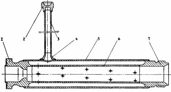 Пироклапан состоит из корпуса 2 и клапана 6. Корпус имеет бобышку с отверстием для установки пирочеки 4. Клапан 6 устанавливается в расточку обтекаемого прилива корпуса 2 и удерживается чекой пирочеки 4.